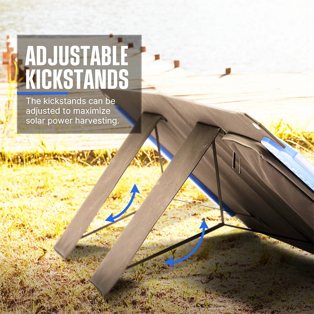 The kickstands can be adjusted to maximize solar power harvesting, and the auto-optimization function achieves immediate reconnection when sunlight returns after charging interruption.