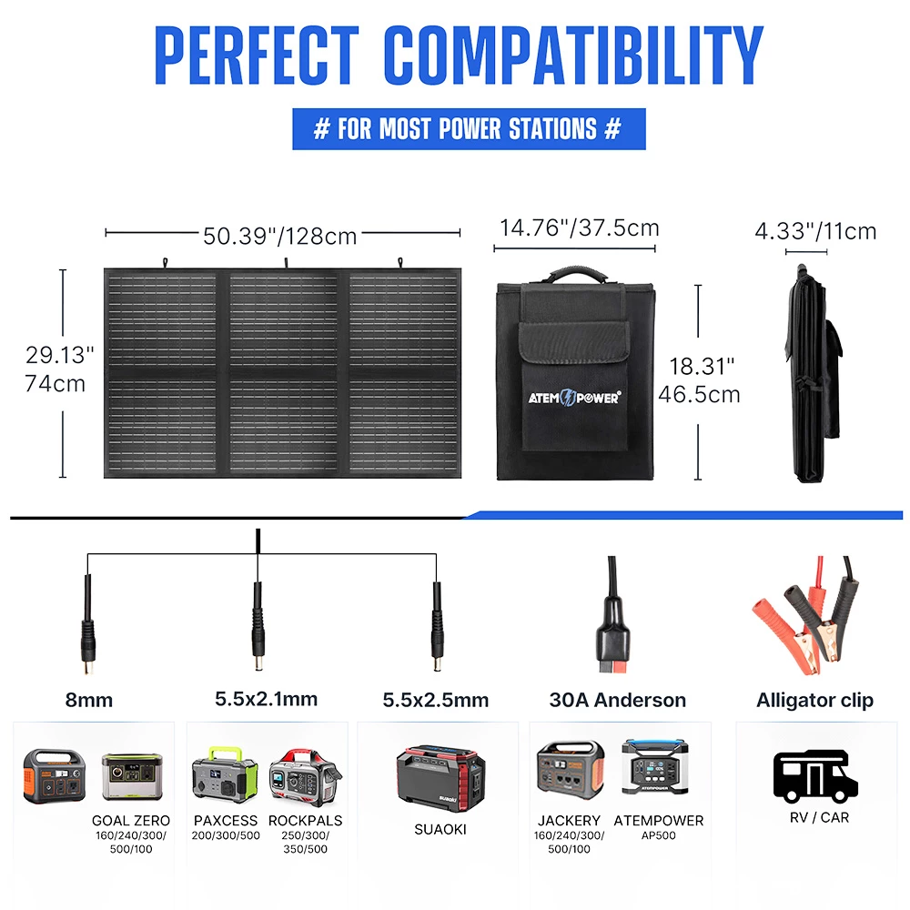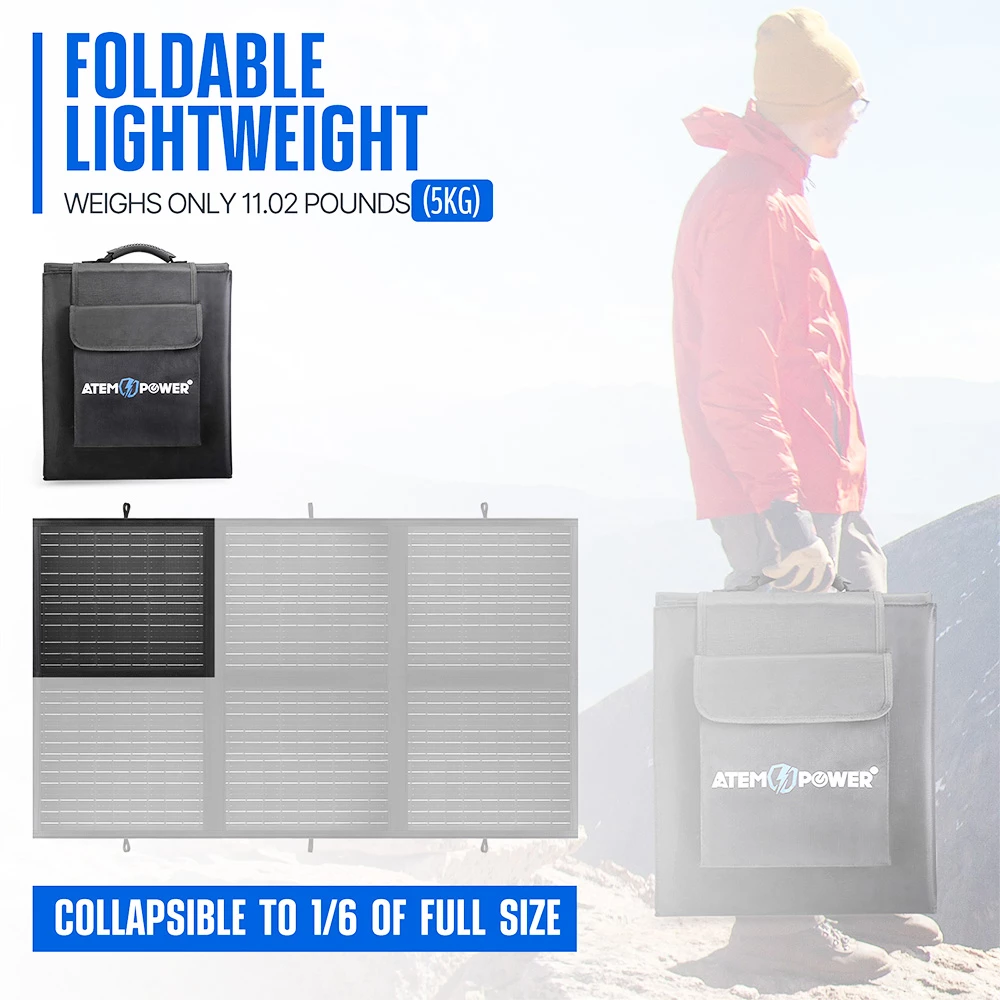 This portable solar panel by ATEM POWER is engineered with the auto-optimization function for immediate reconnection when sunlight returns after charging interruption.