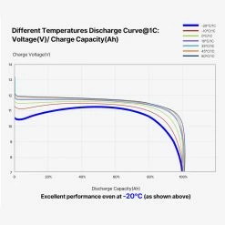 This LiFePO4 battery is thermally stable and eliminates the risk of explosion and can operate efficiently at a temperature range of -20 – 70 Celsius.