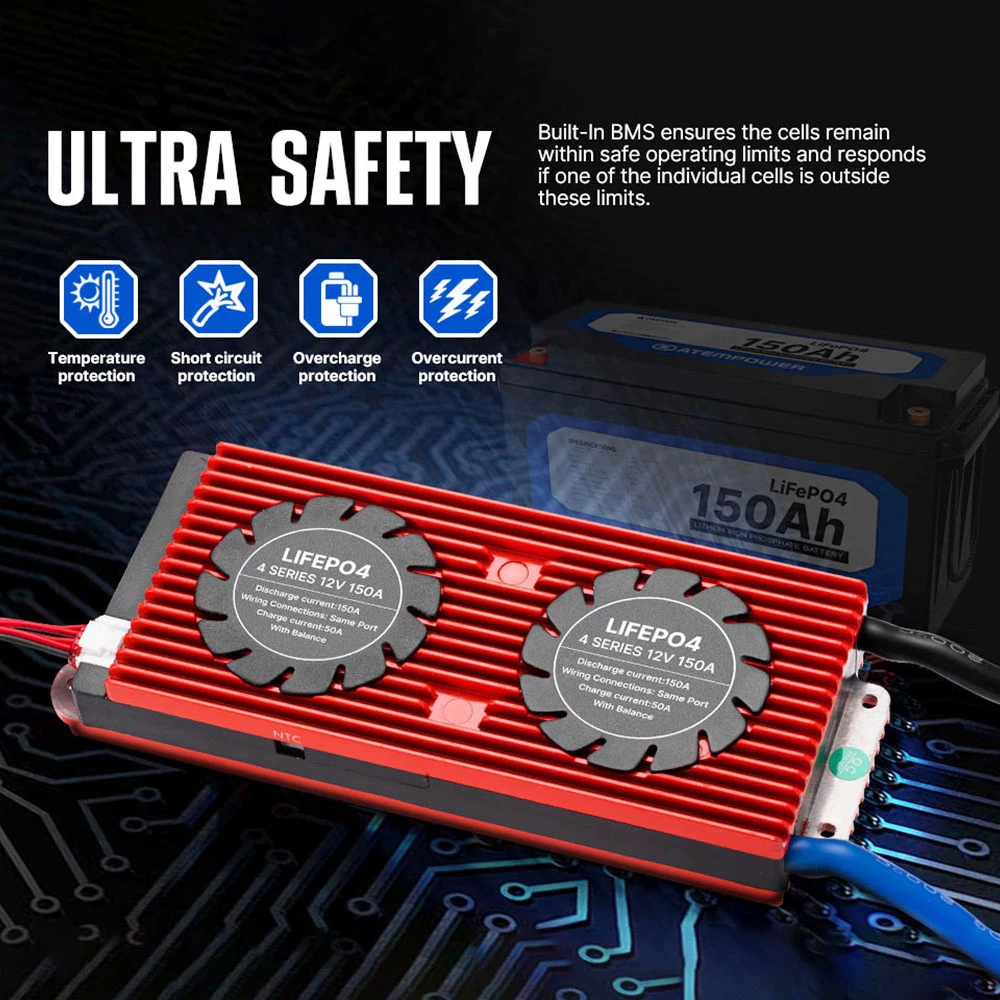 AGM is recommended to be discharged to 50% of the capacity while ATEM POWER LiFePO4 batteries can be discharged to 80-90%.