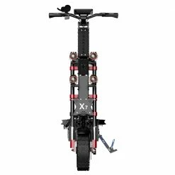 The full suspension system gives you extra confidence when going off-roading. It features a full-sized hydraulic front fork with 57mm travel and dual rear shocks in a trailing-arm structure with 50mm travel. Thanks to the advanced suspension system,×7 absorbs most of the bumps on the trails you blast through and gives you extra confidence to go faster at all times.