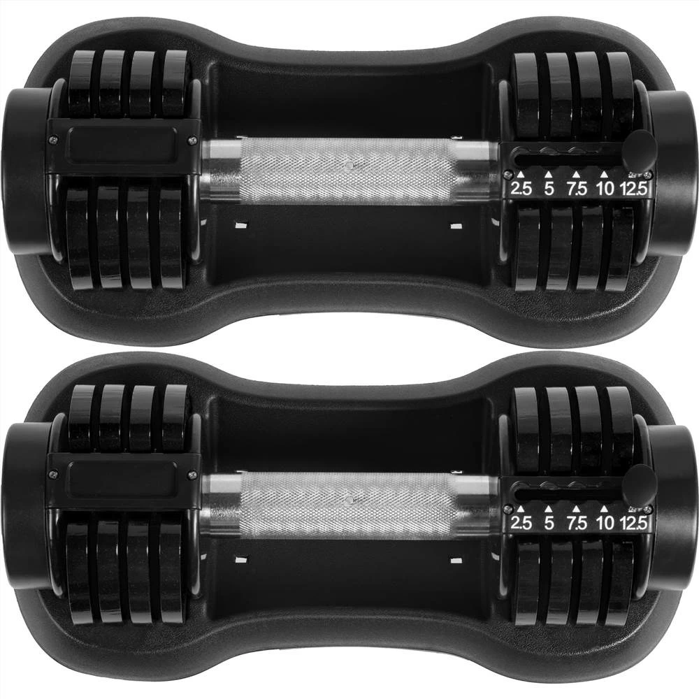 [ADJUSTABLE]Â – Quick change weight adjustments from 2.5 lbs to 12.5 lbs with push-pull design, 2 PCS, black. The adjustable feature also allows multiple family members to train based on their own skill level.