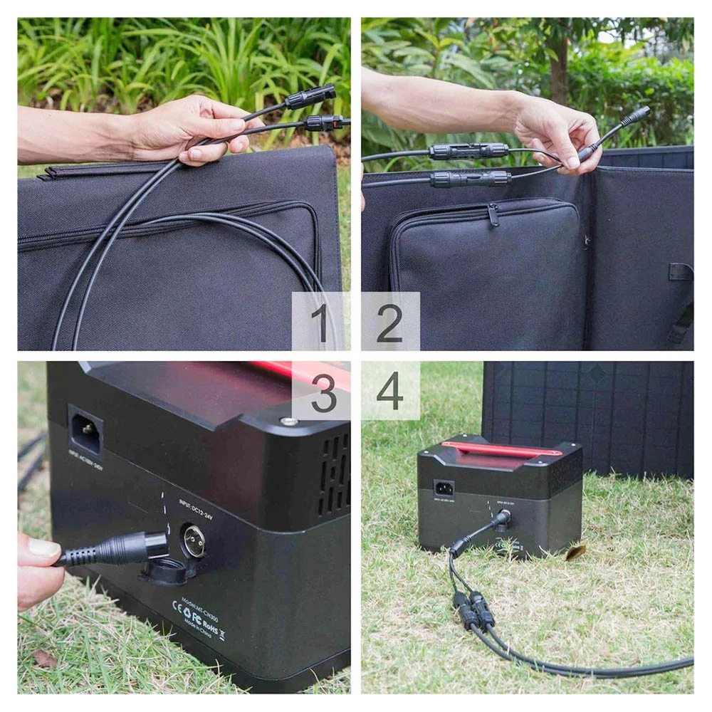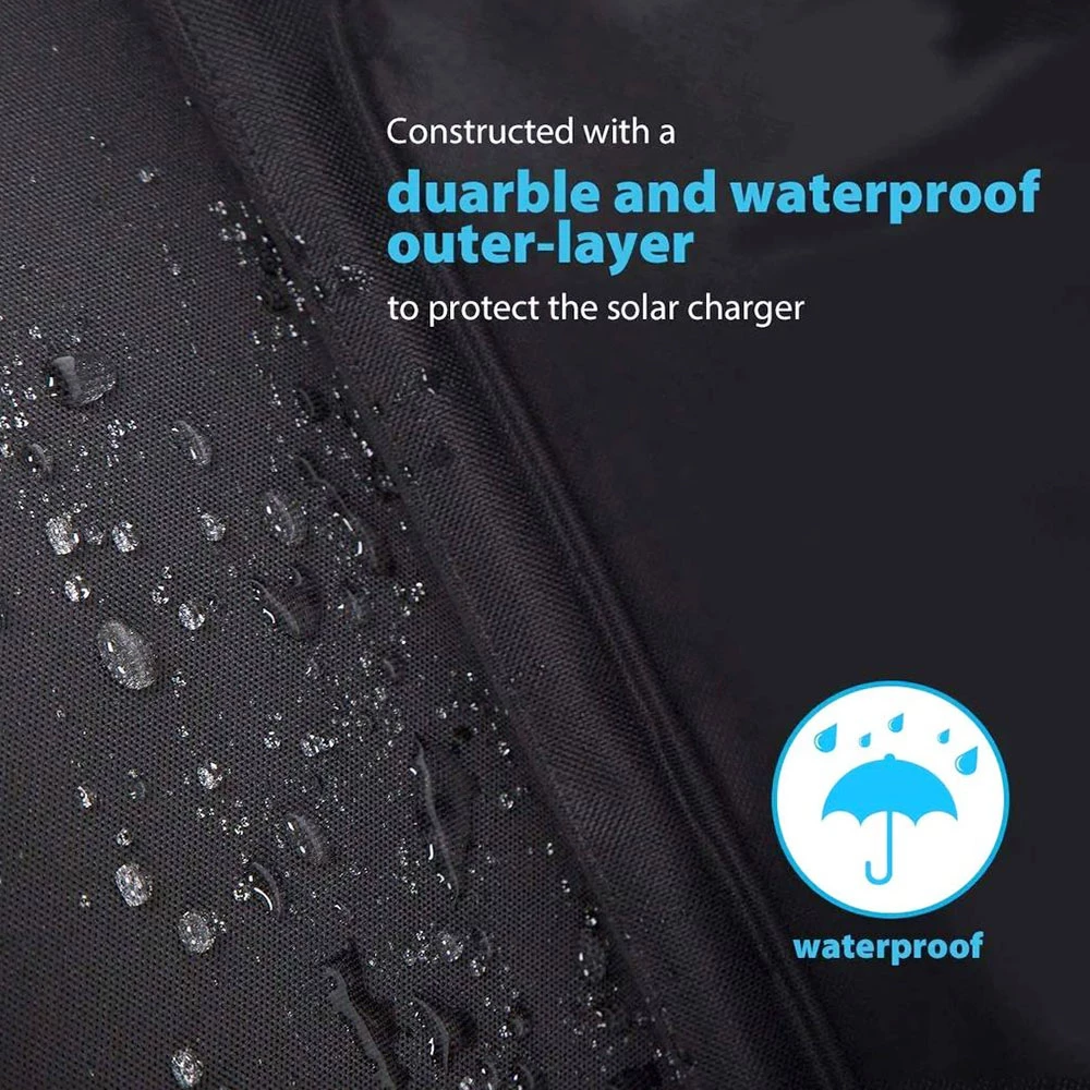 The 100W solar panel is made from durable Oxford cloth and is water-resistant to endure all weather conditions, ideal for outdoor activities such as camping, climbing, hiking, and picnic.